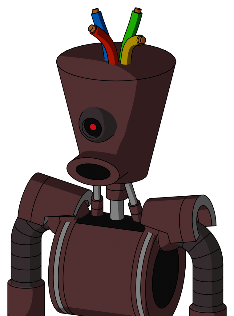 Purple Droid With Cylinder-Conic Head And Round Mouth And Black Cyclops Eye And Wire Hair