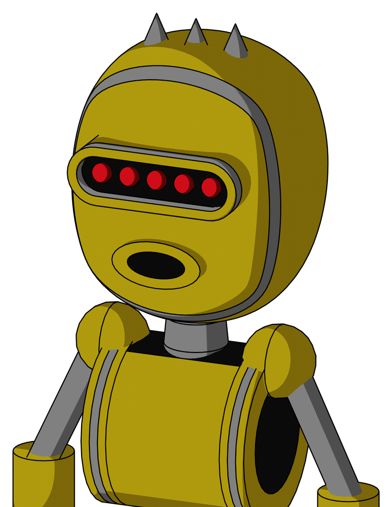 Yellow Automaton With Bubble Head And Round Mouth And Visor Eye And Three Spiked