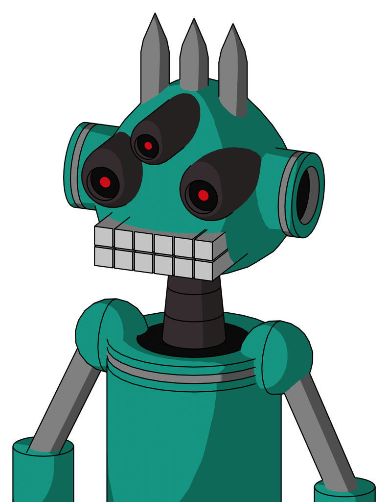 Green Automaton With Rounded Head And Keyboard Mouth And Three-Eyed And Three Spiked