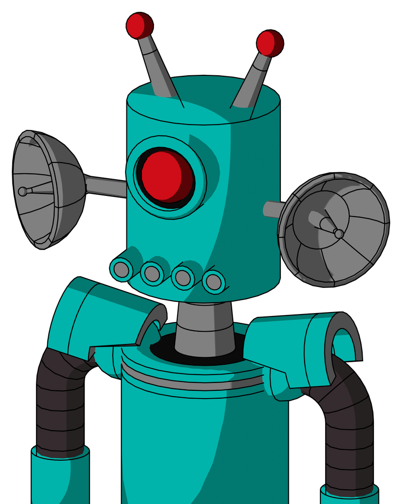 Greenish Robot With Cylinder Head And Pipes Mouth And Cyclops Eye And Double Led Antenna