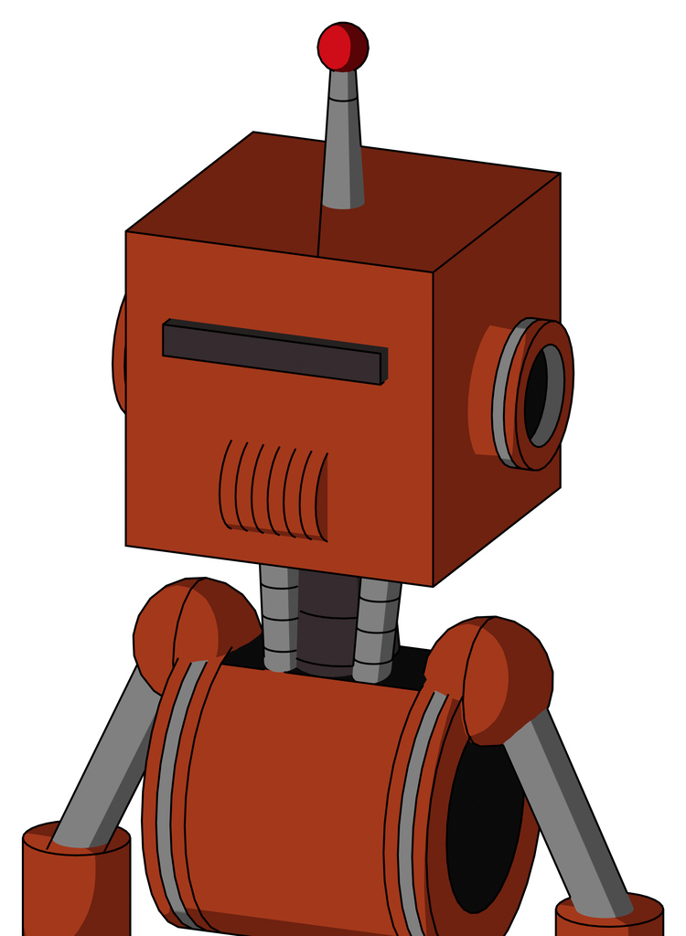 Orange Robot With Box Head And Speakers Mouth And Black Visor Cyclops And Single Led Antenna