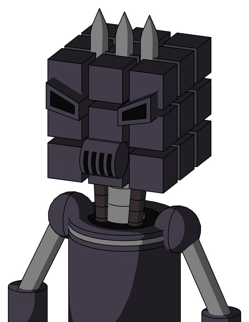 Purple Robot With Cube Head And Speakers Mouth And Angry Eyes And Three Spiked