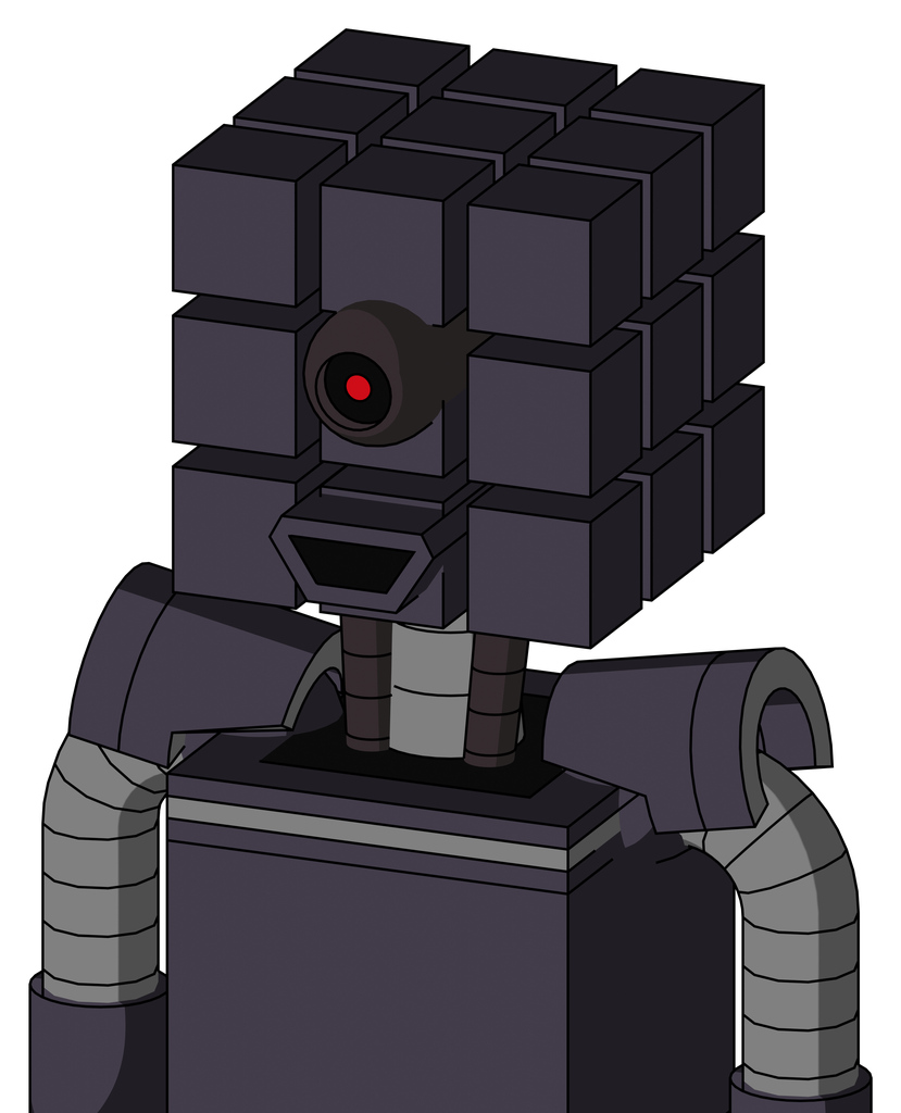 Purple Robot With Cube Head And Happy Mouth And Black Cyclops Eye