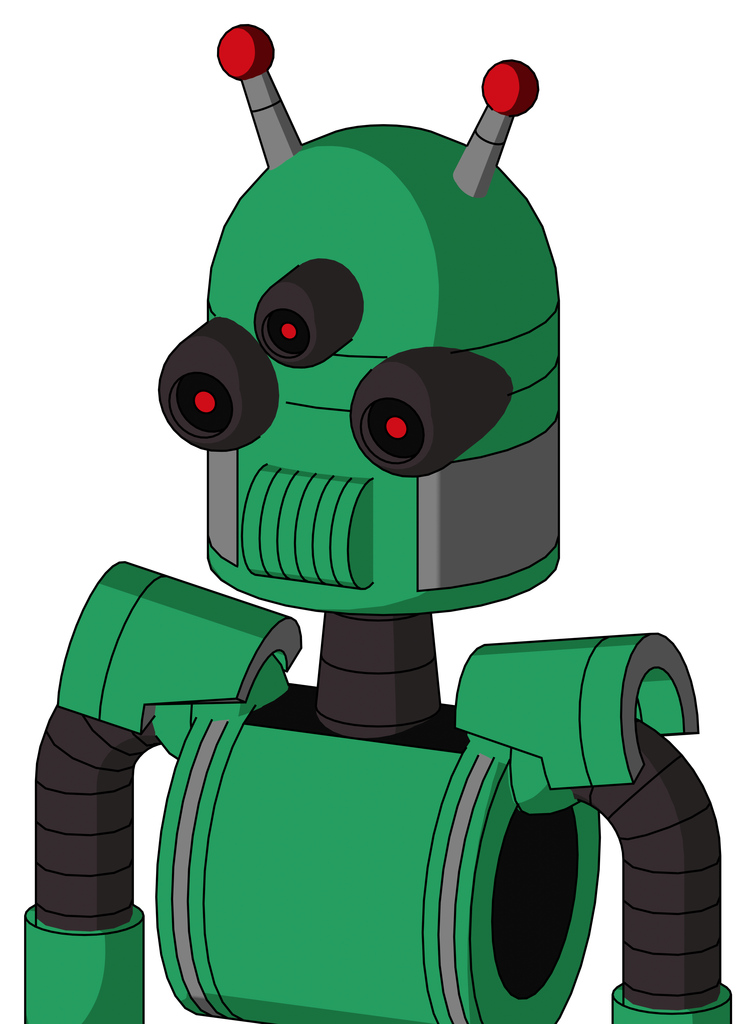 Green Automaton With Dome Head And Speakers Mouth And Three-Eyed And Double Led Antenna