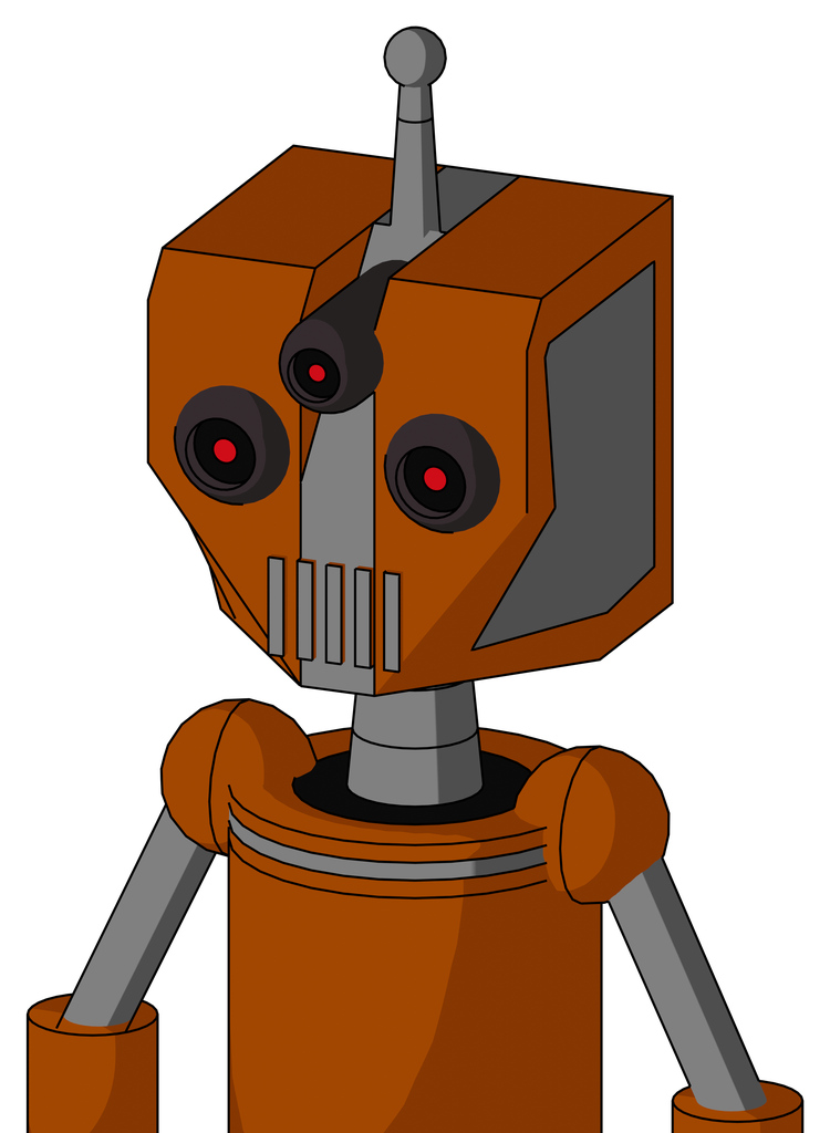 Redish-Orange Mech With Mechanical Head And Vent Mouth And Three-Eyed And Single Antenna