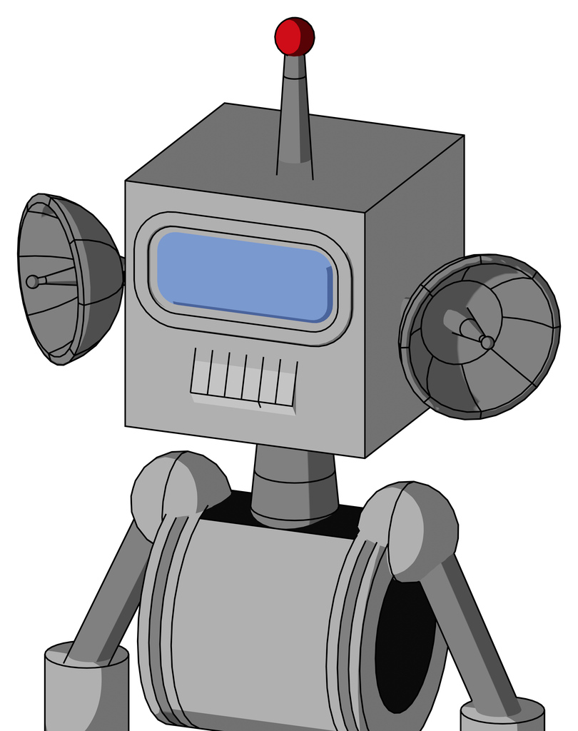 White Automaton With Box Head And Teeth Mouth And Large Blue Visor Eye And Single Led Antenna