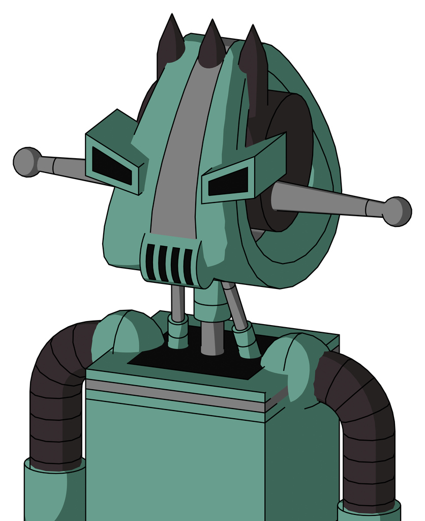 Green Mech With Droid Head And Speakers Mouth And Angry Eyes And Three Dark Spikes