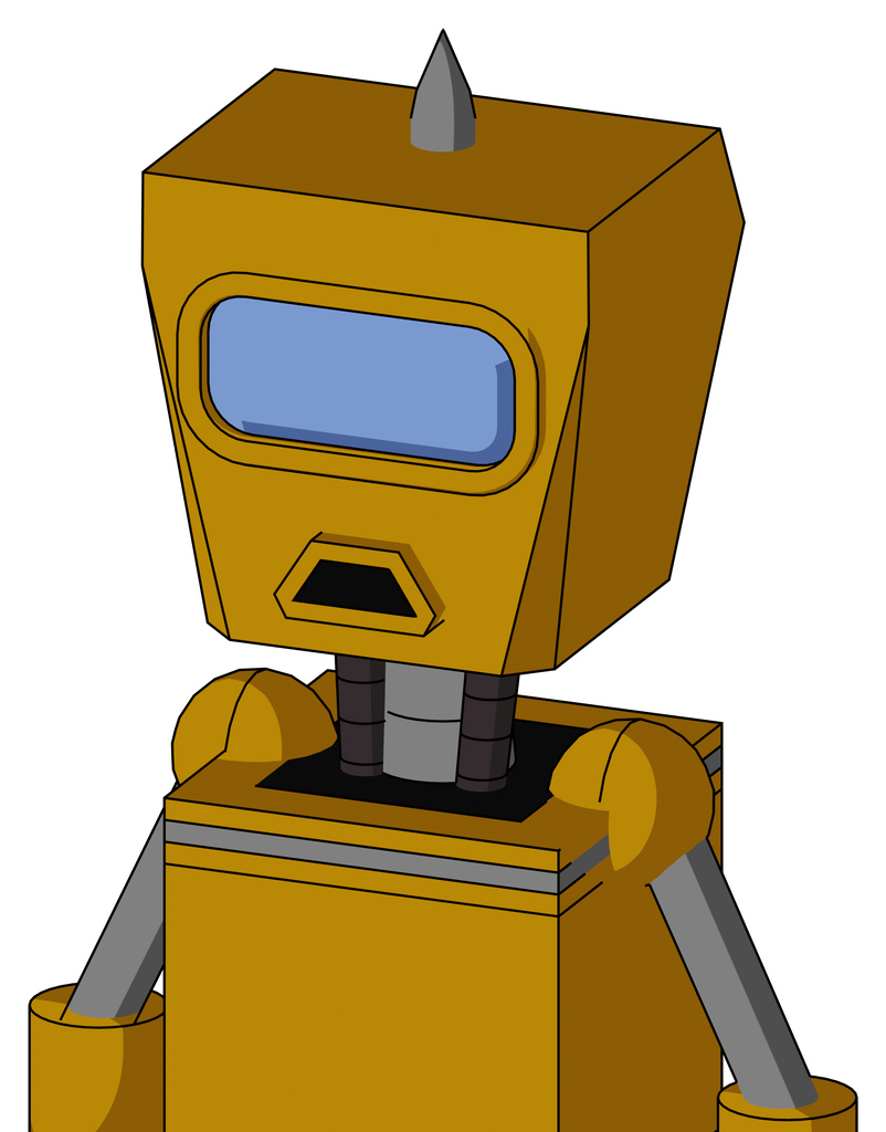 Yellow Droid With Box Head And Sad Mouth And Large Blue Visor Eye And Spike Tip