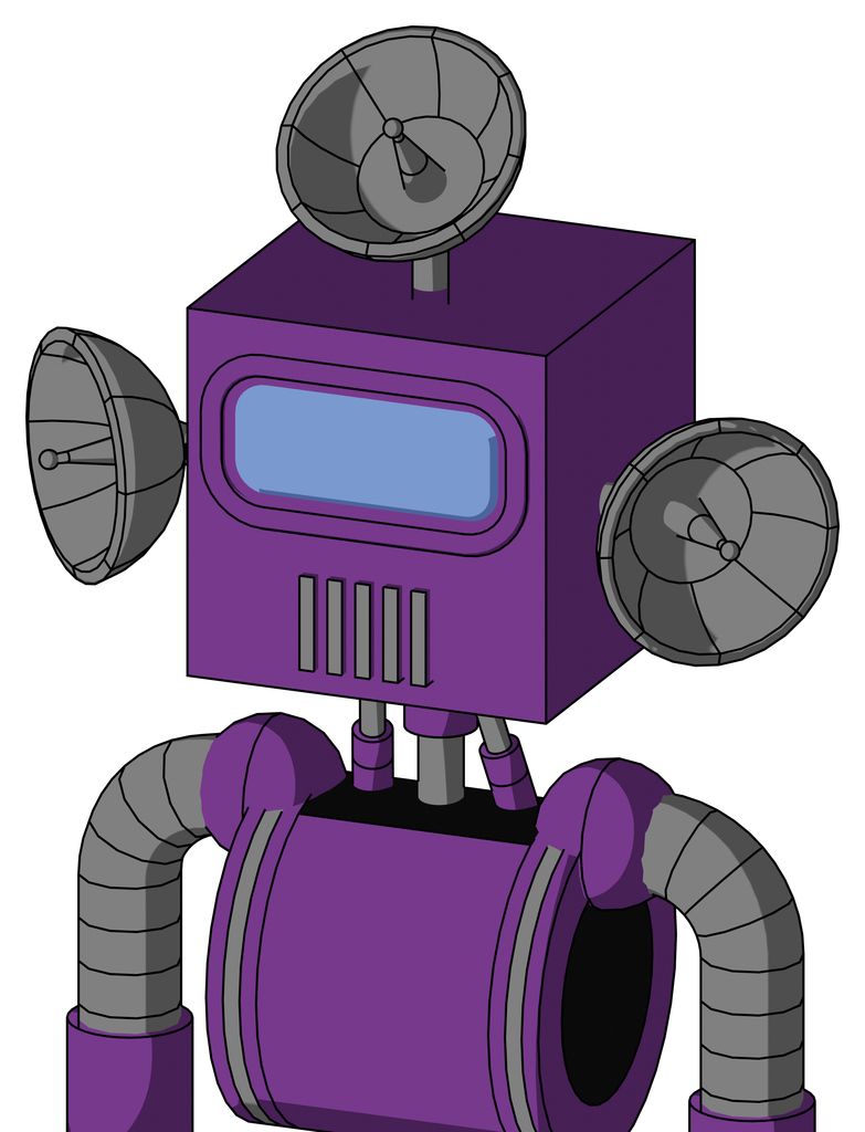 Purple Automaton With Box Head And Vent Mouth And Large Blue Visor Eye And Radar Dish Hat