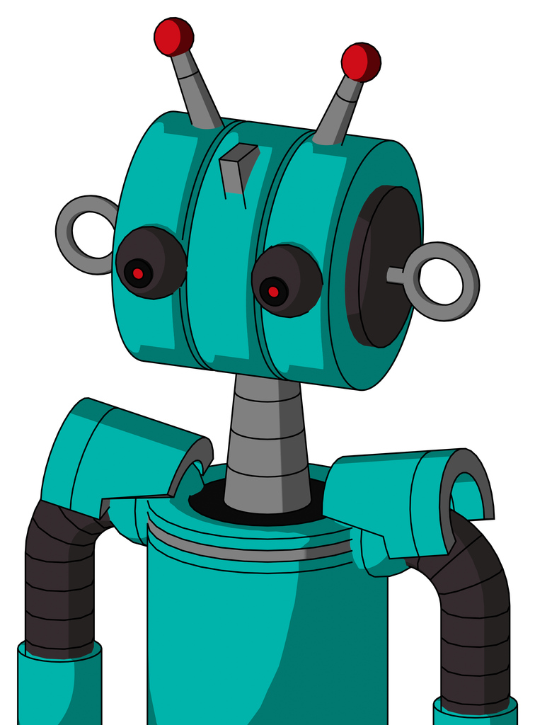 Greenish Robot With Multi-Toroid Head And Red Eyed And Double Led Antenna