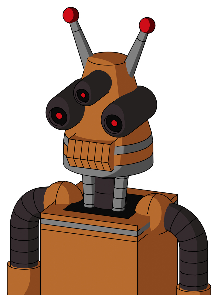 Orange Robot With Cone Head And Toothy Mouth And Three-Eyed And Double Led Antenna