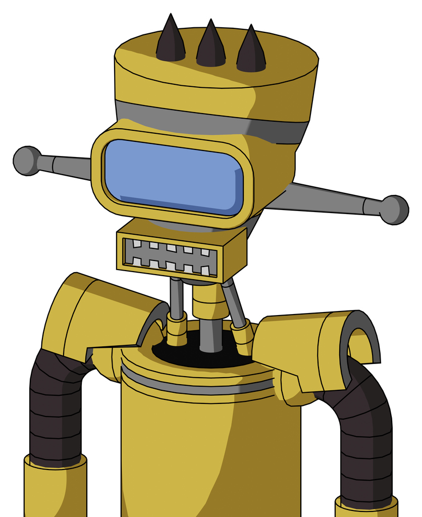 Yellow Droid With Vase Head And Square Mouth And Large Blue Visor Eye And Three Dark Spikes