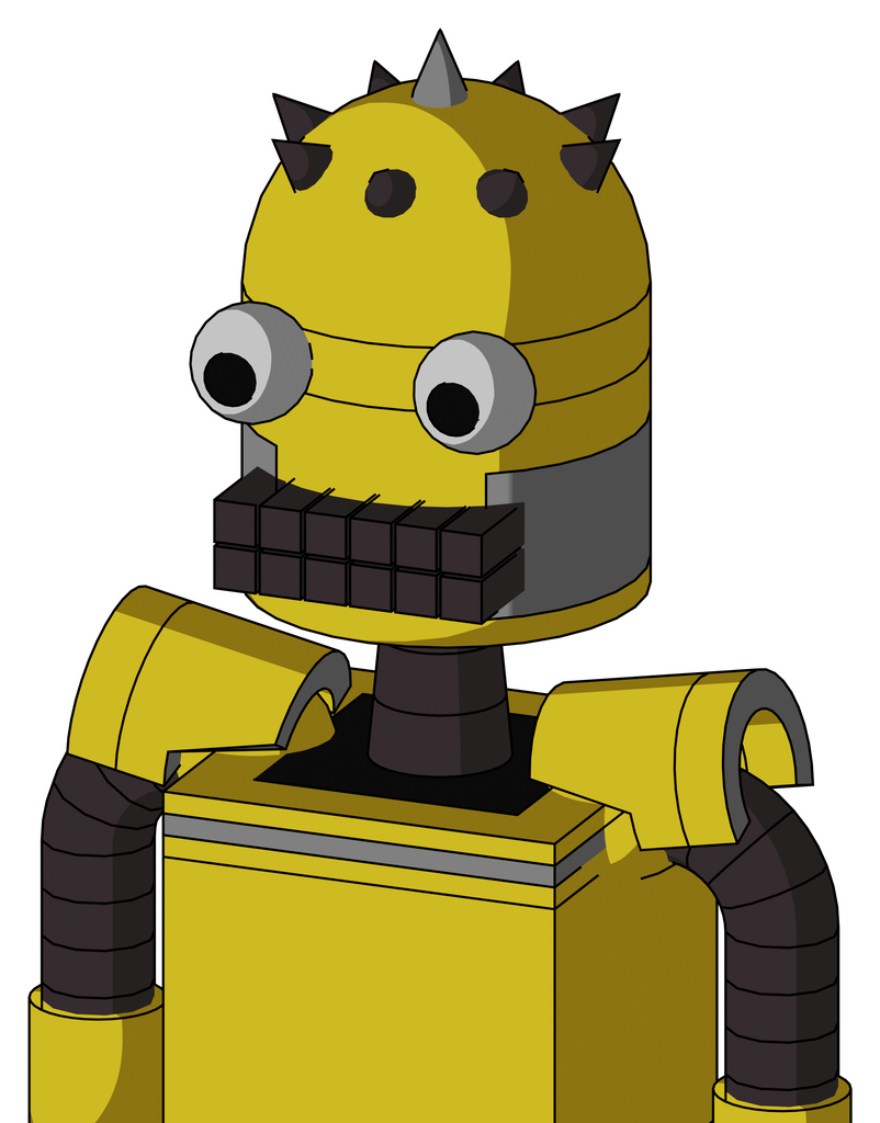 Yellow Droid With Dome Head And Keyboard Mouth And Two Eyes And Spike Tip