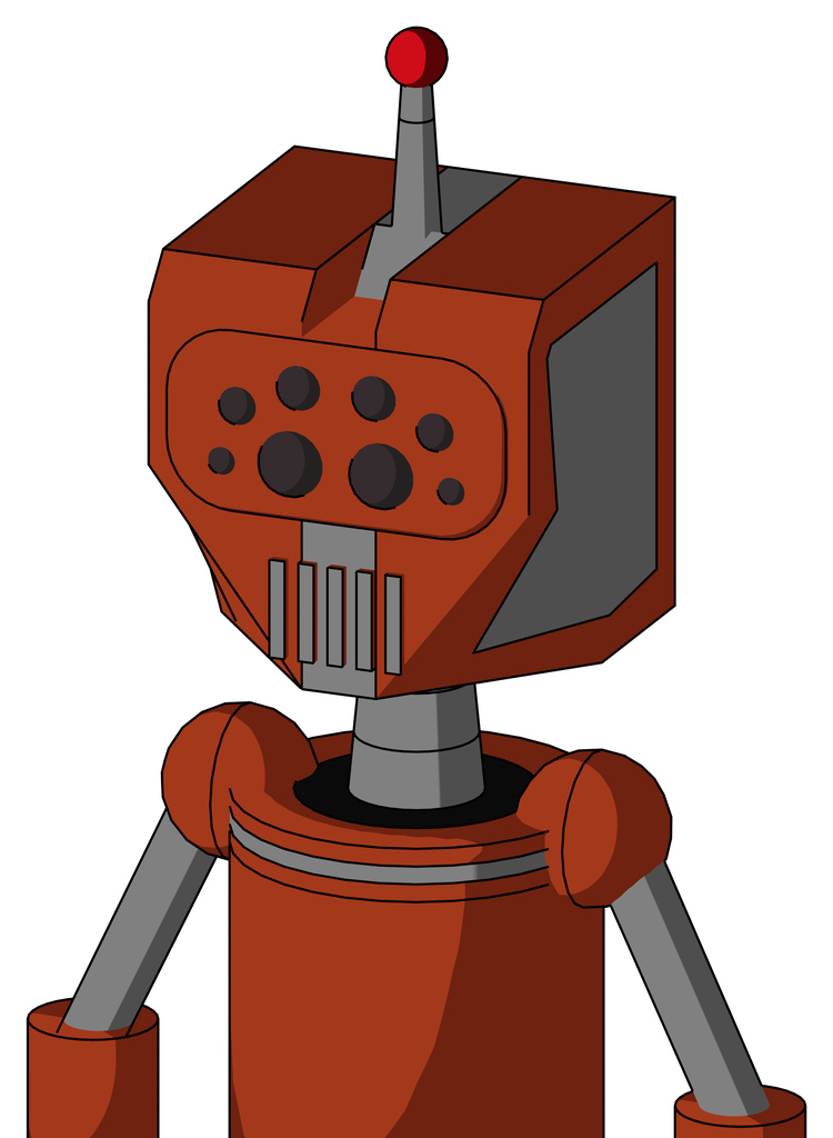 Orange Robot With Mechanical Head And Vent Mouth And Bug Eyes And Single Led Antenna