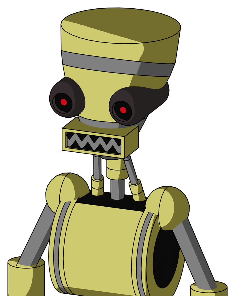 Yellow Robot With Vase Head And Square Mouth And Black Glowing Red Eyes