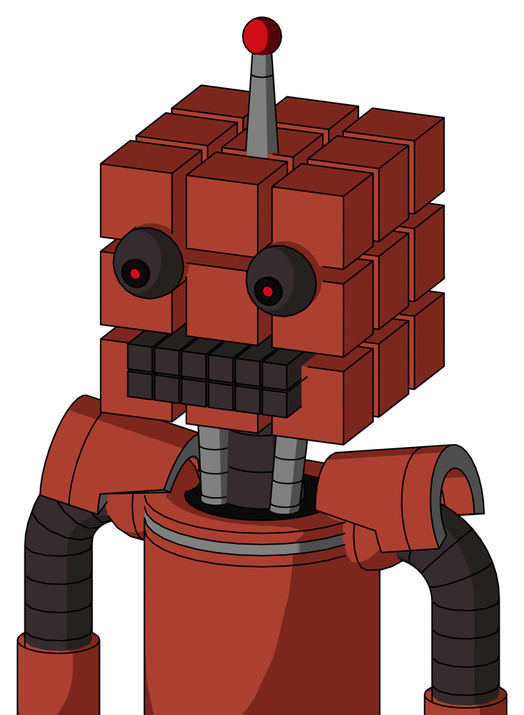 Red Automaton With Cube Head And Keyboard Mouth And Red Eyed And Single Led Antenna