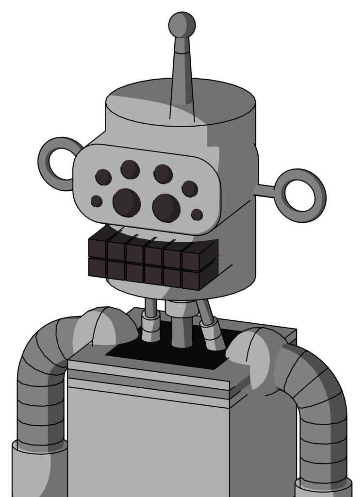 White Automaton With Cylinder Head And Keyboard Mouth And Bug Eyes And Single Antenna
