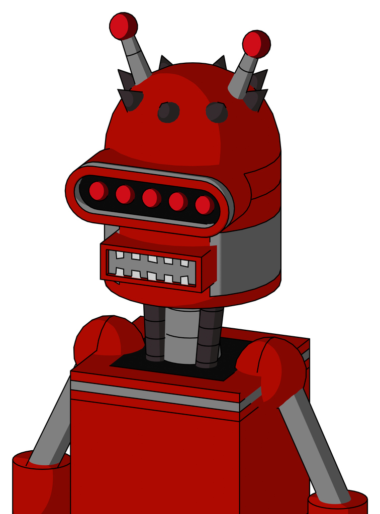 Red Mech With Dome Head And Square Mouth And Visor Eye And Double Led Antenna