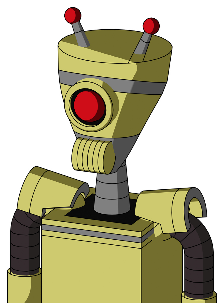 Yellow Robot With Vase Head And Speakers Mouth And Cyclops Eye And Double Led Antenna