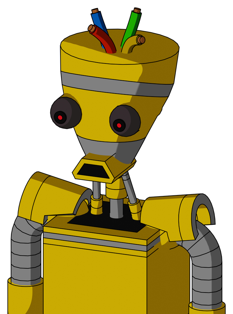 Yellow Droid With Vase Head And Sad Mouth And Red Eyed And Wire Hair