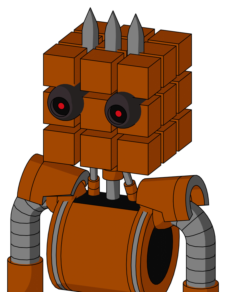 Redish-Orange Mech With Cube Head And Black Glowing Red Eyes And Three Spiked