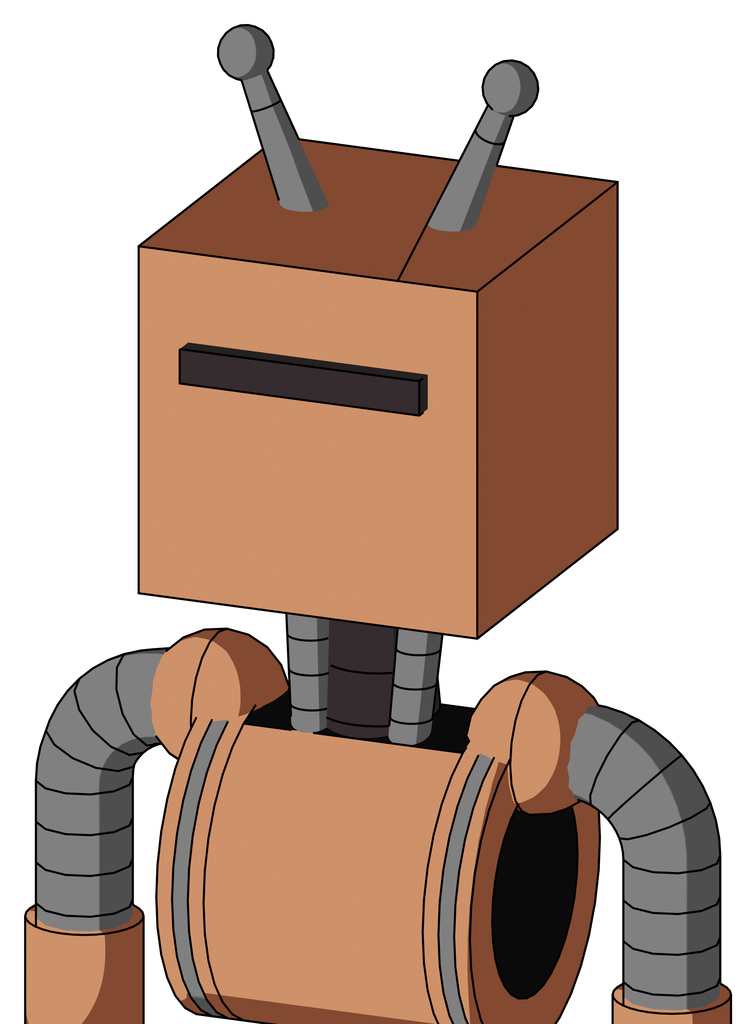 Peach Robot With Box Head And Black Visor Cyclops And Double Antenna