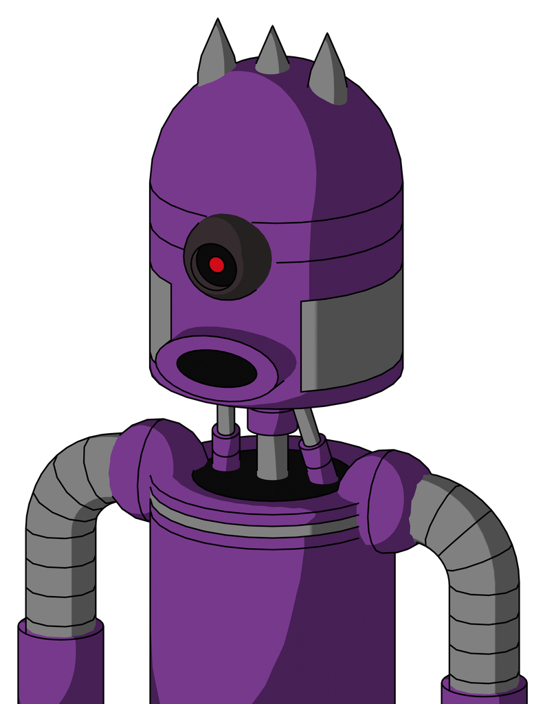 Purple Automaton With Dome Head And Round Mouth And Black Cyclops Eye And Three Spiked
