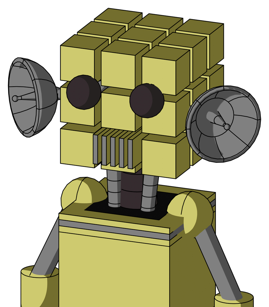 Yellow Robot With Cube Head And Vent Mouth And Two Eyes