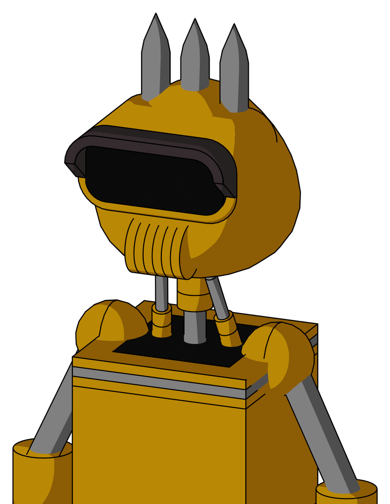 Yellow Droid With Rounded Head And Speakers Mouth And Black Visor Eye And Three Spiked
