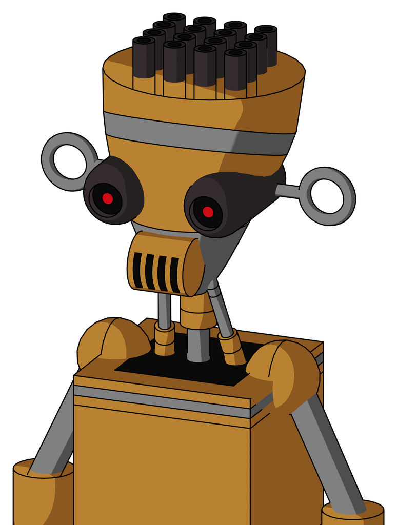 Yellowish Droid With Vase Head And Speakers Mouth And Black Glowing Red Eyes And Pipe Hair