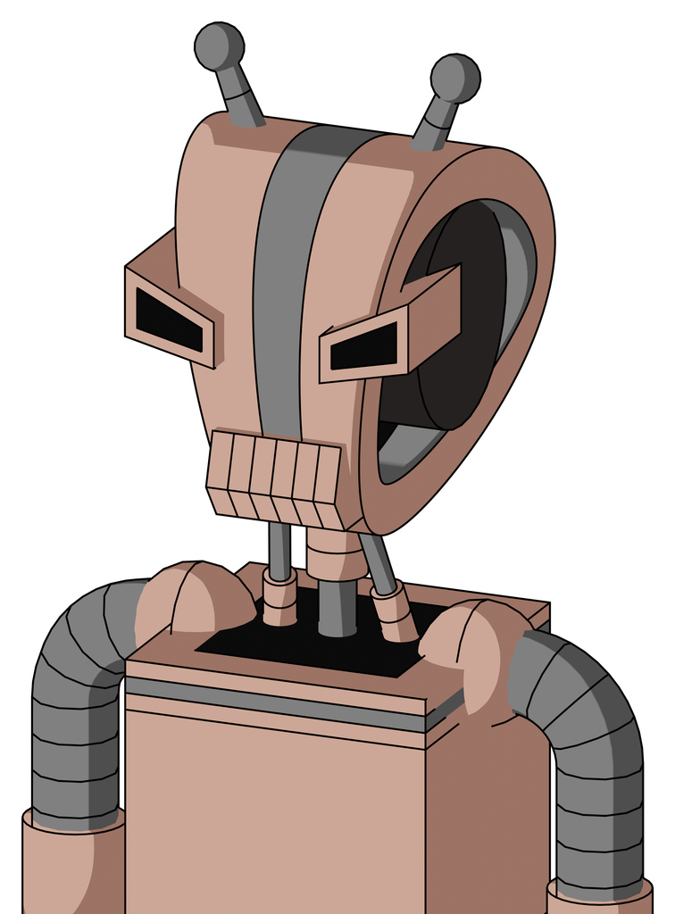 Light-Peach Mech With Droid Head And Toothy Mouth And Angry Eyes And Double Antenna