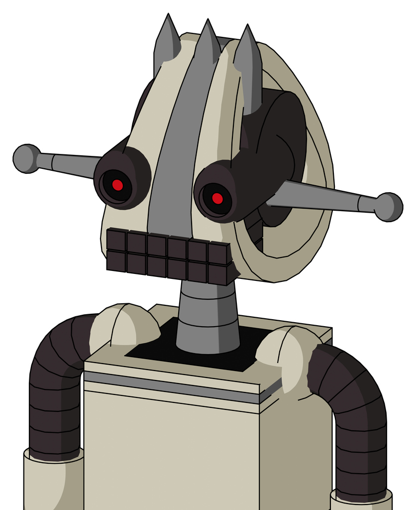Tan Mech With Droid Head And Keyboard Mouth And Black Glowing Red Eyes And Three Spiked