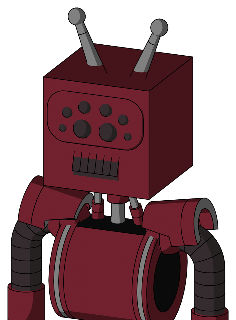Red Droid With Box Head And Dark Tooth Mouth And Bug Eyes And Double Antenna