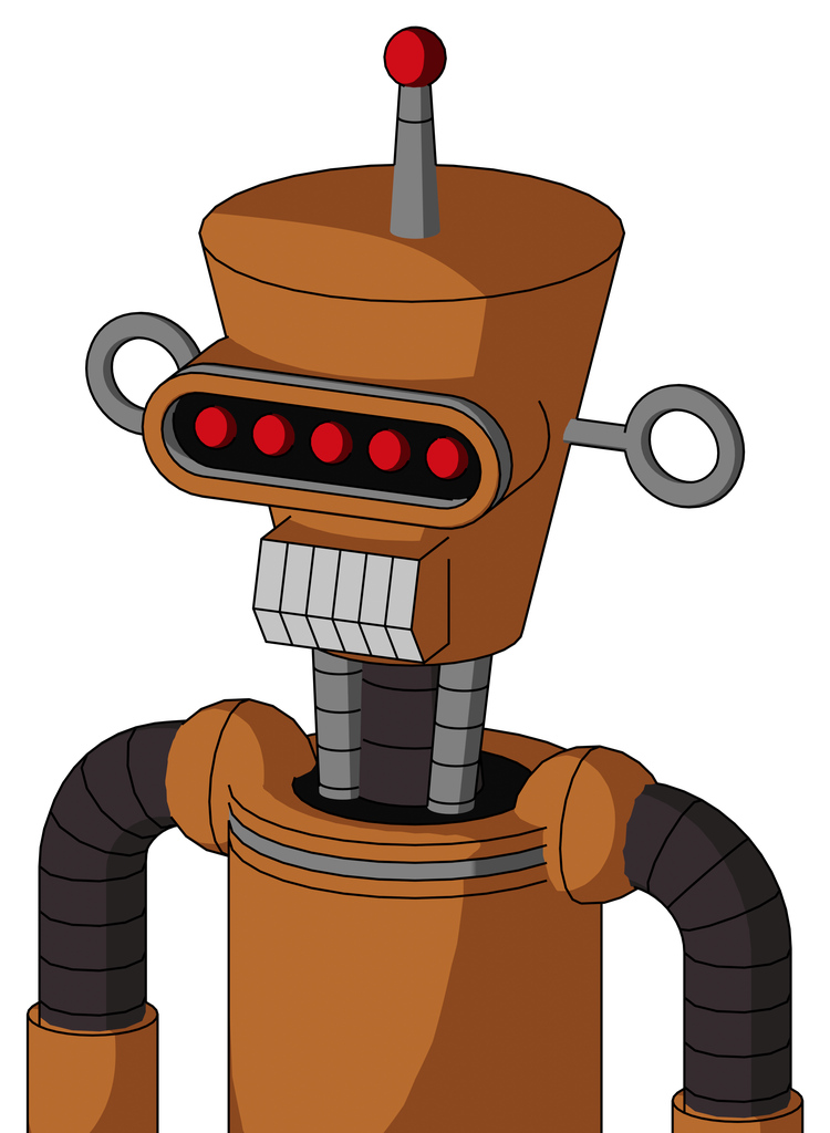 Orange Robot With Cylinder-Conic Head And Teeth Mouth And Visor Eye And Single Led Antenna
