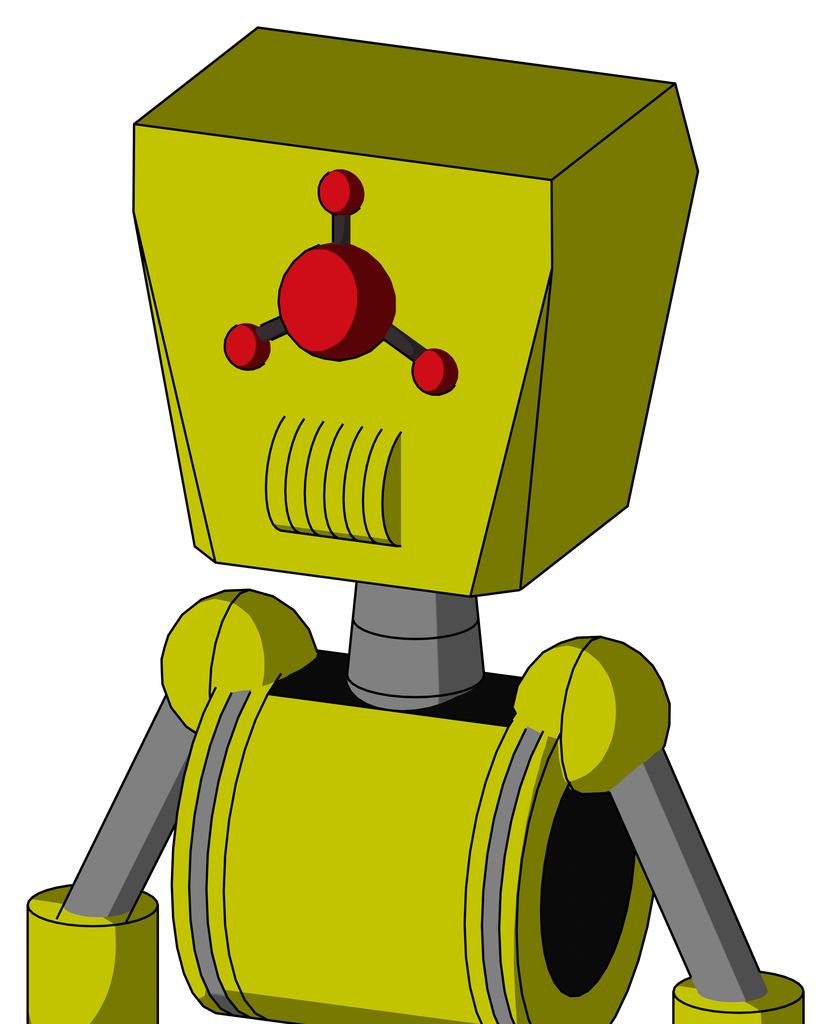Yellow Robot With Box Head And Speakers Mouth And Cyclops Compound Eyes