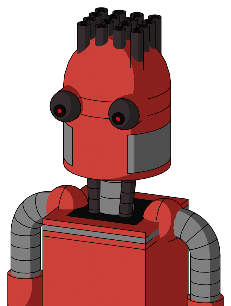 Tomato-Red Droid With Dome Head And Red Eyed And Pipe Hair