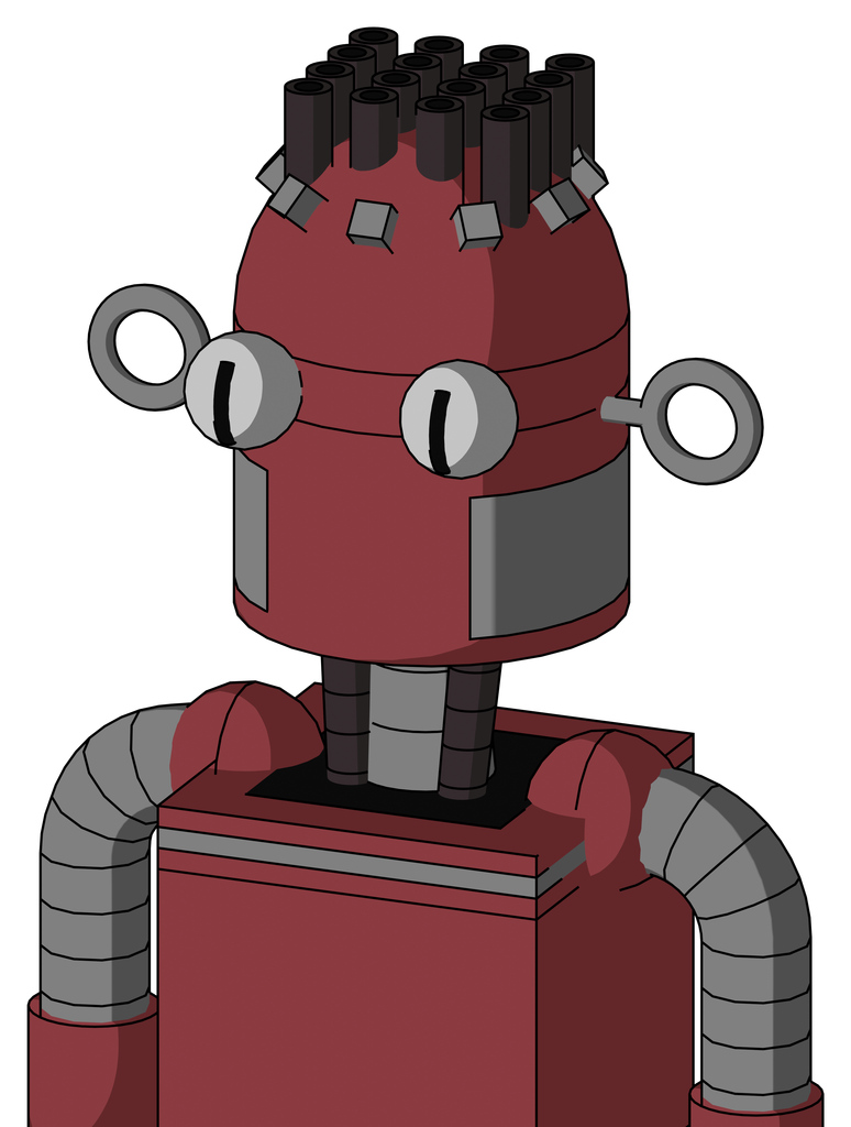 Red Mech With Dome Head And Two Eyes And Pipe Hair