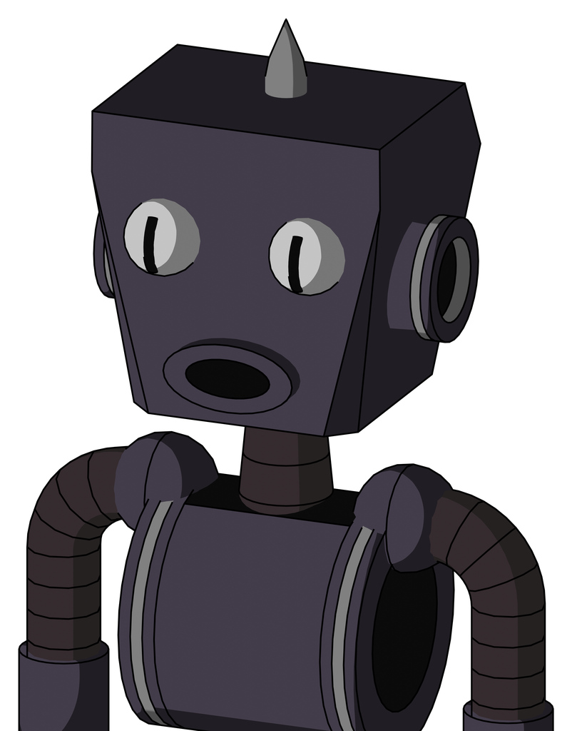 Purple Robot With Box Head And Round Mouth And Two Eyes And Spike Tip