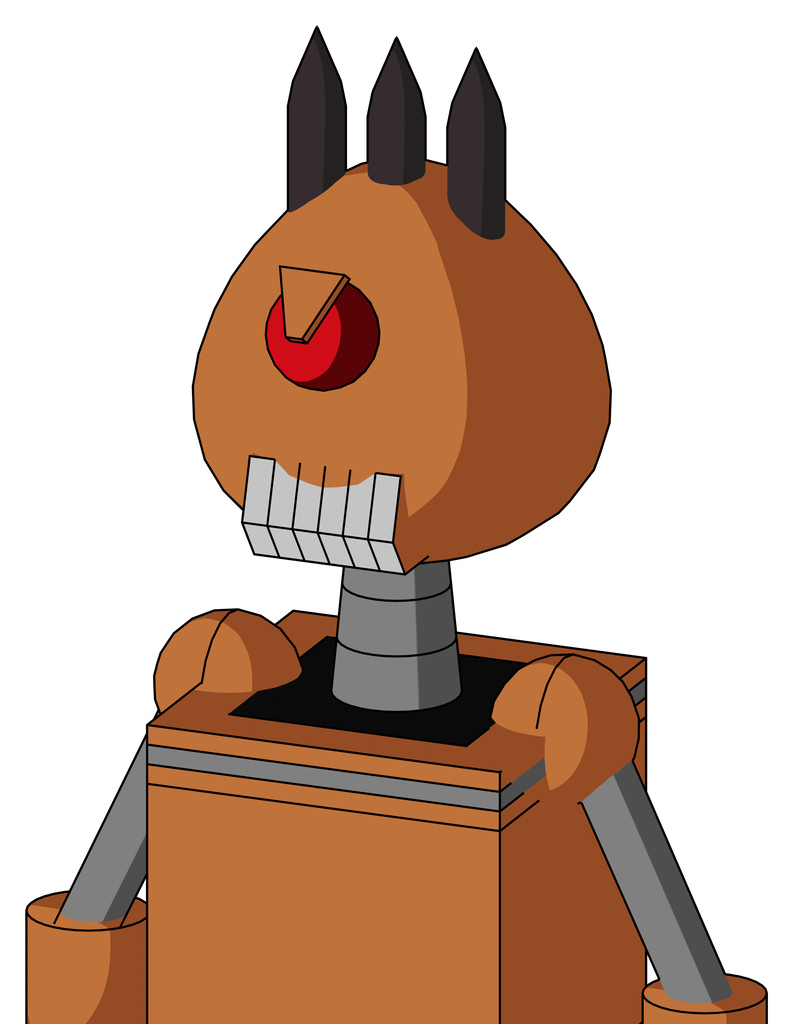 Orange Droid With Rounded Head And Teeth Mouth And Angry Cyclops And Three Dark Spikes