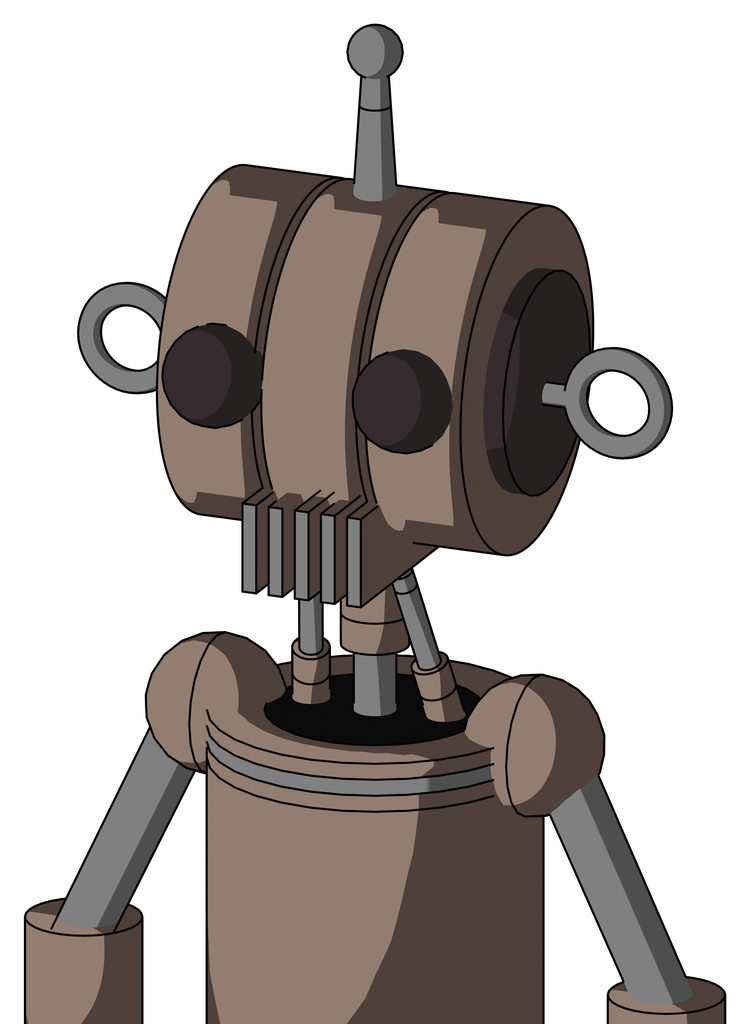 Gray Robot With Multi-Toroid Head And Vent Mouth And Two Eyes And Single Antenna