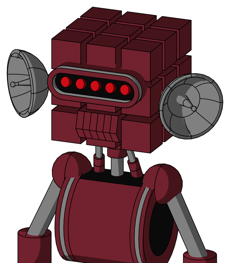 Red Droid With Cube Head And Toothy Mouth And Visor Eye