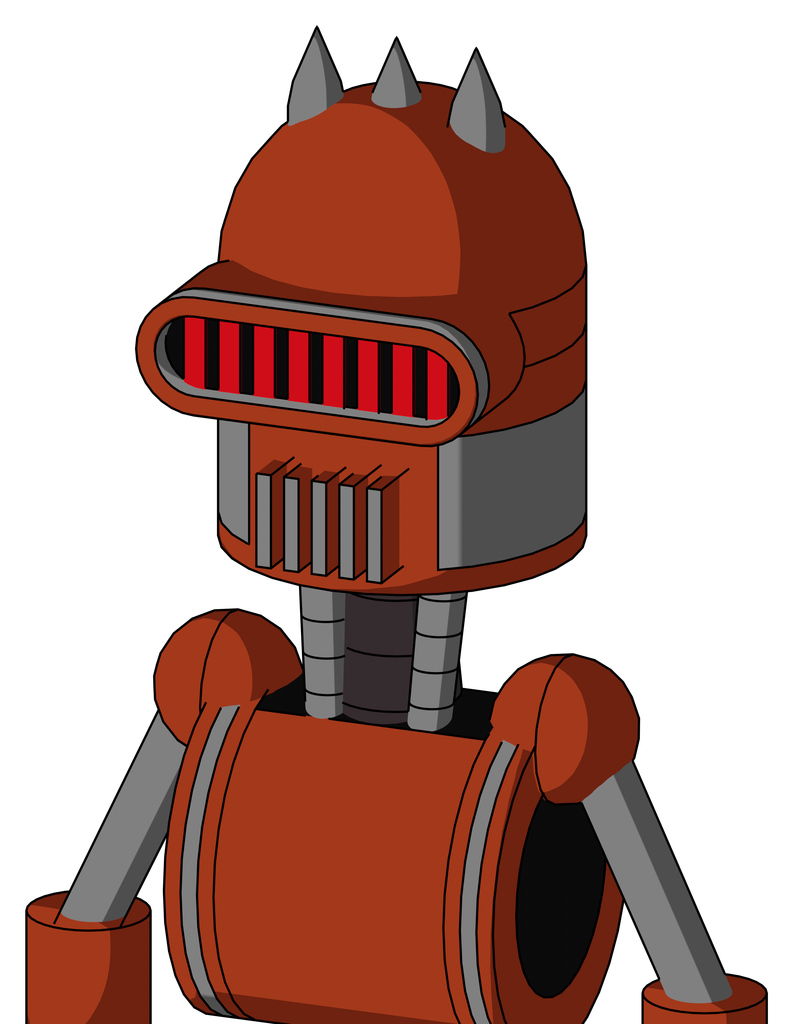 Orange Robot With Dome Head And Vent Mouth And Visor Eye And Three Spiked