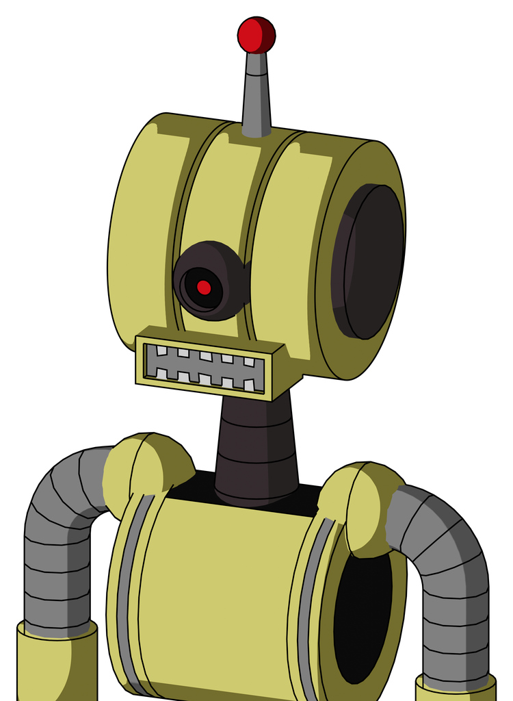 Yellow Robot With Multi-Toroid Head And Square Mouth And Black Cyclops Eye And Single Led Antenna