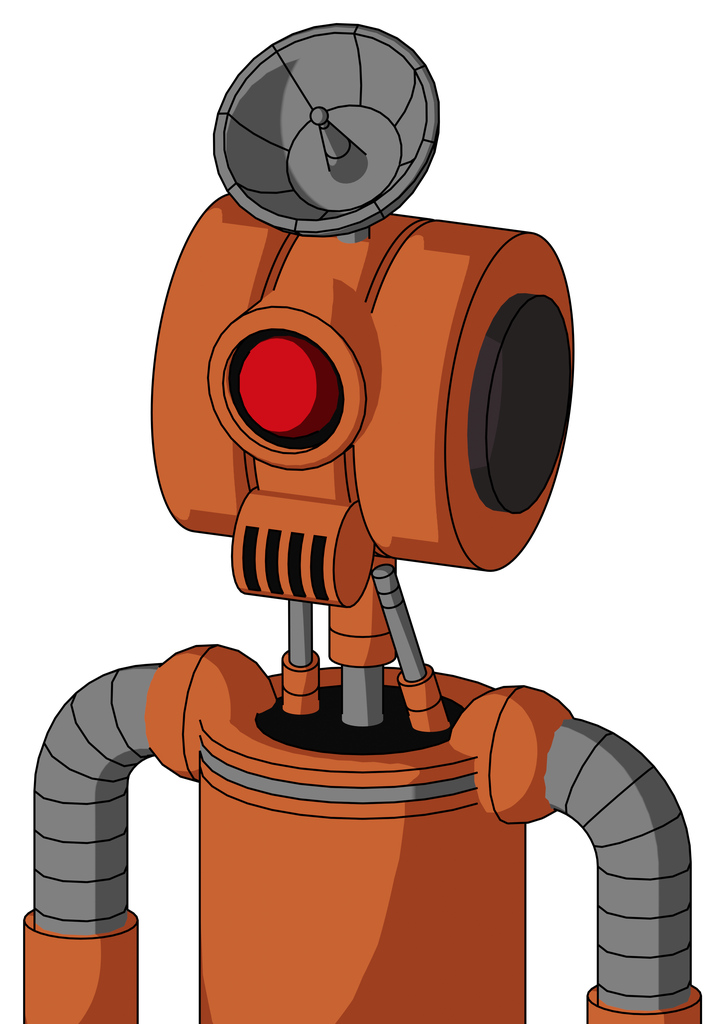 Orange Mech With Multi-Toroid Head And Speakers Mouth And Cyclops Eye And Radar Dish Hat