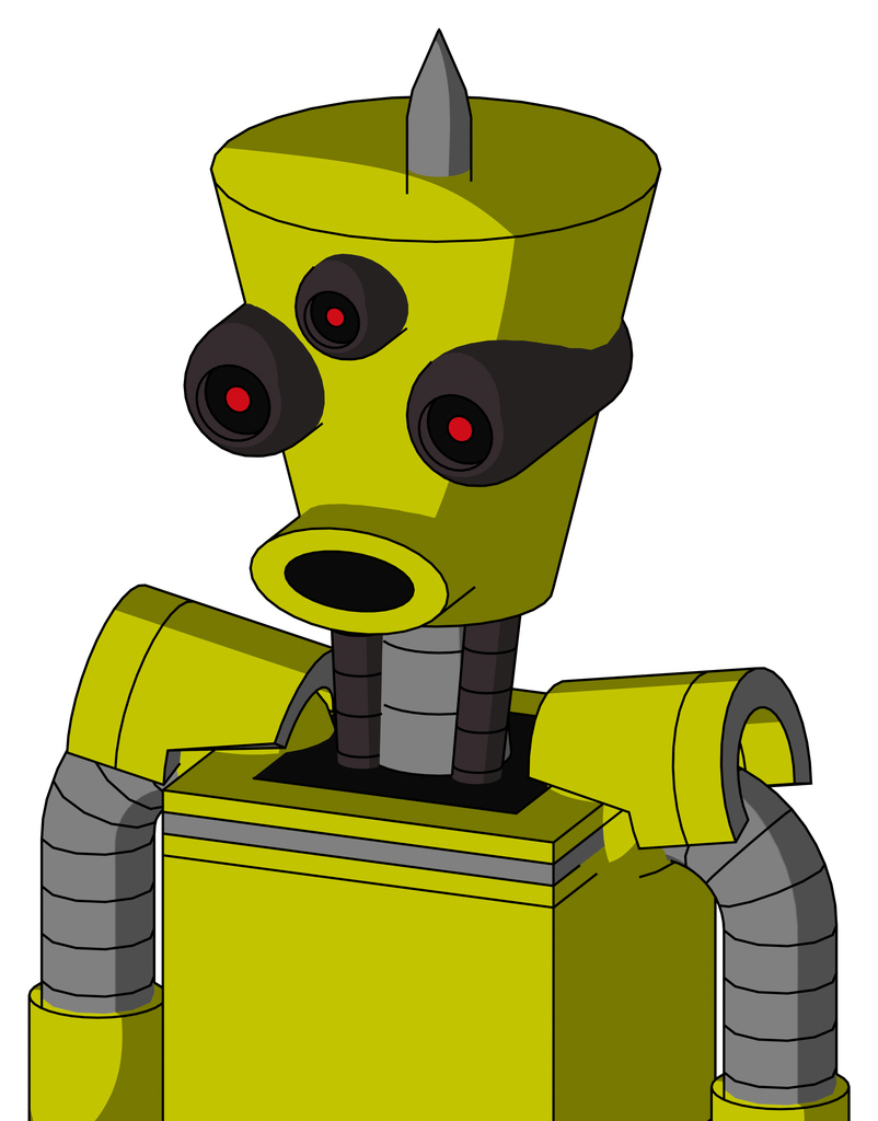 Yellow Robot With Cylinder-Conic Head And Round Mouth And Three-Eyed And Spike Tip
