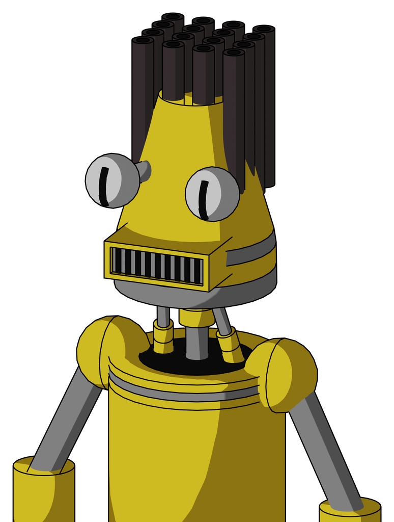 Yellow Droid With Cone Head And Square Mouth And Two Eyes And Pipe Hair