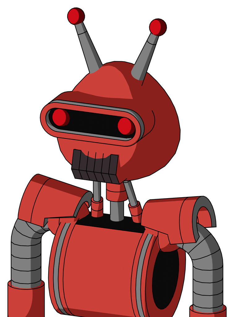 Tomato-Red Droid With Rounded Head And Dark Tooth Mouth And Visor Eye And Double Led Antenna