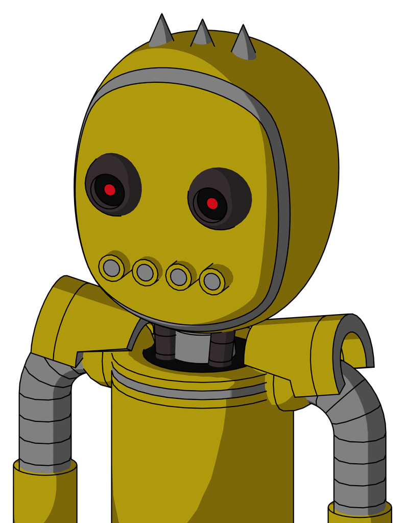 Yellow Automaton With Bubble Head And Pipes Mouth And Black Glowing Red Eyes And Three Spiked