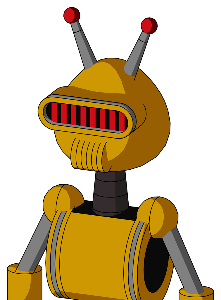Yellow Robot With Rounded Head And Speakers Mouth And Visor Eye And Double Led Antenna