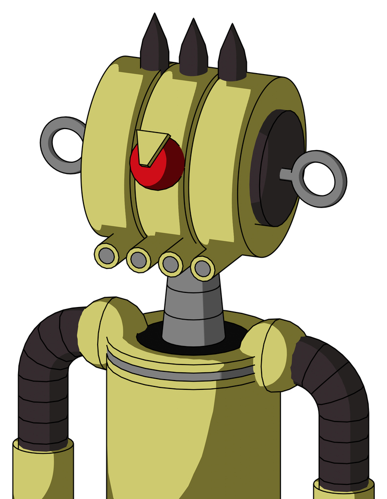 Yellow Robot With Multi-Toroid Head And Pipes Mouth And Angry Cyclops And Three Dark Spikes